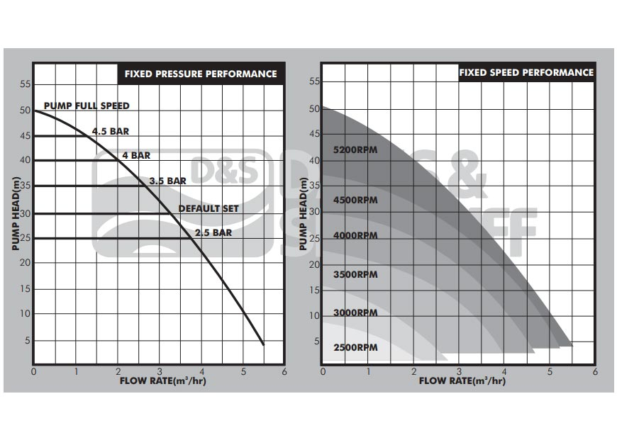 Funksionim plotësisht automatik me mundësi të rregullimit të cilësimeve të presionit konstant që përputhet me rrjedhën me kërkesën dhe funksionin e shpejtësisë konstante që ndryshon presionin me kërkesën.